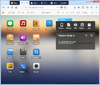 Jika antara komputer dan hp android anda sudah terhubung, maka anda bisa melihat tampilan seperti gambar di bawah ini: